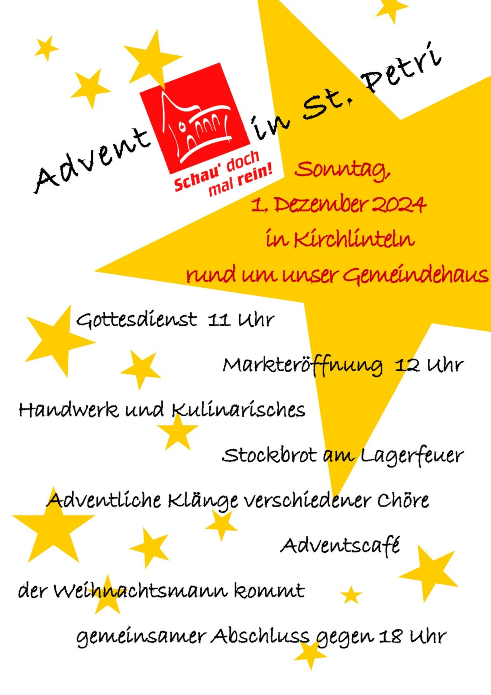 Seit dem Sommer laufen die Vorbereitungen und bald ist es endlich soweit: Am ersten Advent findet rund um das Gemeindehaus wieder unser „Advent in St. Petri“ statt. Das Team hat die Planungen jetzt abgeschlossen und fiebert dem Termin am ersten Advent entgegen. Alle Bürger sind herzlich zu diesem besonderen Tag eingeladen!